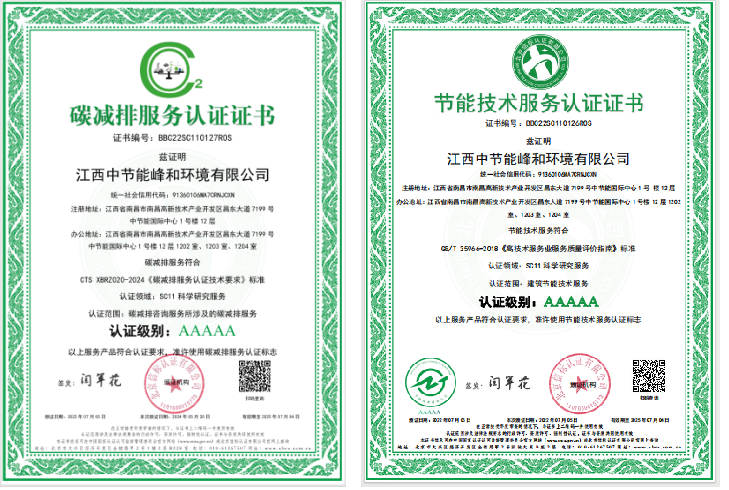 緊扣國家雙碳戰(zhàn)略,積極探索節(jié)能降碳服務(wù)。成立伊始,峰和公司就緊緊圍繞國家雙碳戰(zhàn)略,積極切入雙碳和節(jié)能服務(wù)兩大業(yè)務(wù),確立以“研究、咨詢、合作、交流”為基本定位,在打造綠色制造樣板區(qū)、零碳產(chǎn)業(yè)示范區(qū)方面提供技術(shù)支持,深化開展與中國人民大學(xué)、南昌大學(xué)等知名高校在GEP核算、ESG管理和生態(tài)產(chǎn)品價(jià)值實(shí)現(xiàn)等方面的合作,在人才隊(duì)伍、雙碳資質(zhì)、業(yè)務(wù)開發(fā)、生態(tài)系統(tǒng)和課題研究等五大方面積極發(fā)展新質(zhì)生產(chǎn)力。截至目前,公司累計(jì)申請(qǐng)并獲得資質(zhì)證書總共17類25個(gè),其中包括8項(xiàng)國家認(rèn)監(jiān)委頒發(fā)的體系認(rèn)證、15項(xiàng)國家級(jí)委員會(huì)備案的專業(yè)資質(zhì)證書以及2項(xiàng)江西省環(huán)境保護(hù)產(chǎn)業(yè)協(xié)會(huì)評(píng)定的服務(wù)能力證書;新簽訂和實(shí)施的項(xiàng)目合同金額兩千多萬元,實(shí)現(xiàn)了從“0”到“1”,從“1”到“10”的跨越式發(fā)展,在江西省域內(nèi)的雙碳和節(jié)能服務(wù)方面贏得了市場(chǎng)口碑,具有較大的市場(chǎng)影響力。