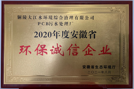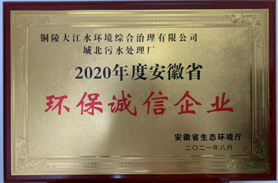 銅陵大江水環(huán)境綜合治理有限公司榮獲“安徽省環(huán)保誠(chéng)信企業(yè)”稱號(hào) |