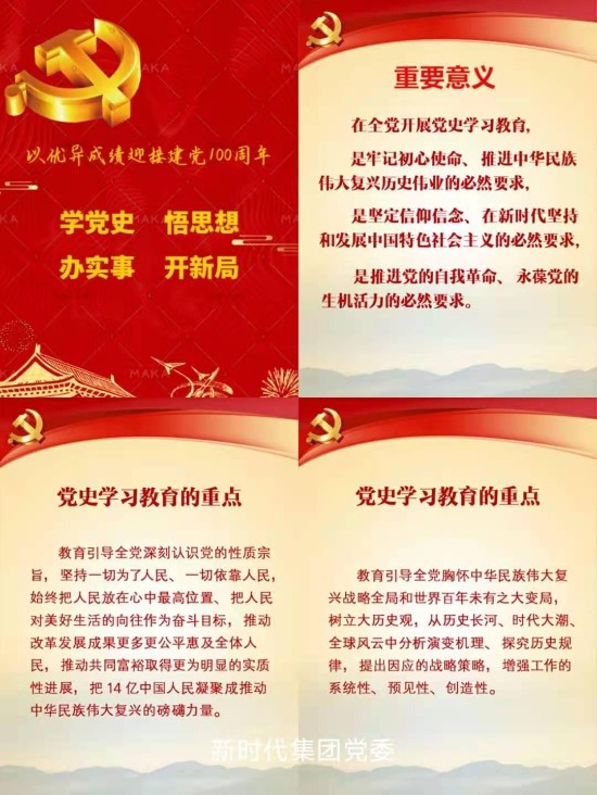 按:在黨史學習教育動員大會上,習近平總書記深刻闡述了開展黨史學習教育的重大意義,深刻闡明了黨史學習教育的重點和工作要求,對黨史學習教育進行了全面動員和部署。集團公司黨委堅決貫徹落實黨中央決策部署,按照國資委黨委工作要求,及時傳達學習習近平總書記重要講話精神,對集團公司開展黨史學習教育進行研究部署。從本期開始,《先鋒》將陸續(xù)刊登各單位的學習動態(tài)和經驗做法,供相互學習借鑒。 集團公司黨委學習貫徹習近平總書記 在黨史學習教育動員大會上的重要講話精神 2月26日、3月3日,集團公司黨委兩次召開常委會議,傳達學習習近平總書記在黨史學習教育動員大會上的重要講話精神,研究部署集團公司系統(tǒng)黨史學習教育工作,黨委書記、董事長宋鑫主持會議并講話。 會議認為,習近平總書記的重要講話高屋建瓴、思想深邃,深刻闡述了在全黨開展黨史學習教育的重大意義,深刻闡明了黨史學習教育的重點和工作要求,對黨史學習教育進行了全面動員和部署,為我們開展好黨史學習教育指明了方向、提供了根本遵循。集團公司各級黨組織要提高政治站位,迅速把思想和行動統(tǒng)一到習近平總書記重要講話精神上來,全力學好黨史這門必修課,扎實開展好黨史學習教育,增強“四個意識”、堅定“四個自信”、做到“兩個維護”,以優(yōu)異成績迎接建黨一百周年。 會議強調,要充分認識黨史學習教育的重大意義。通過開展黨史學習教育,從中國共產黨百年偉大奮斗歷程中汲取智慧和力量,使廣大黨員干部進一步學懂弄通做實習近平新時代中國特色社會主義思想,牢記黨的初心使命,始終對“國之大者”心中有數(shù),解決好世界觀、人生觀、價值觀這個“總開關”問題,堅定不移推進全面從嚴治黨,持續(xù)營造良好政治生態(tài),更加堅定自覺擔當好中央企業(yè)責任使命。要始終把牢黨史學習教育的目標要求,準確領會習近平總書記重要講話的科學內涵和核心要義,精心組織設計專題學習。要聚焦深化對黨史的系統(tǒng)把握,銘記百年奮斗光輝歷程,深刻汲取歷史經驗,弘揚偉大精神;聚焦馬克思主義中國化成果、特別是對習近平新時代中國特色社會主義思想深化理解,用黨的創(chuàng)新理論武裝頭腦、指導實踐、推動工作;聚焦“國之大者”,胸懷兩個大局,不斷提高政治判斷力、政治領悟力、政治執(zhí)行力,堅決做到“兩個維護”。要精心組織謀劃,確保黨史學習教育取得扎實成效。要認真貫徹落實習近平總書記關于學黨史、悟思想、辦實事、開新局的要求,加強組織領導,壓緊壓實各級黨組織責任,全面啟動、高質量推進黨史學習教育;要注重示范引領,各級黨員領導干部要率先垂范、先學先悟,帶領黨員群眾不斷汲取黨史的精神力量;要加強宣傳引導,發(fā)揮好各類媒體平臺作用,大力選樹宣傳身邊典型,為黨史學習教育營造更加濃厚的學習氛圍。 會議審議了集團公司黨委開展黨史學習教育的實施方案和有關工作安排。 風電公司系統(tǒng)學習貫徹習近平總書記在 黨史學習教育動員大會上重要講話 風電公司黨委 中央黨史學習教育動員大會召開以來,風電公司黨委高度重視,及時召開黨委會進行專題研究,并迅速組織全系統(tǒng)各級黨組織深入傳達學習習近平總書記在黨史學習教育動員大會上的重要講話精神。 2月26日,風電公司黨委召開專題會,傳達學習習近平總書記在黨史學習教育動員大會上的重要講話精神,研究部署風電公司系統(tǒng)黨史學習教育工作安排。會議要求,風電公司系統(tǒng)各級黨組織和黨員干部要認真學習貫徹在黨史學習教育動員大會上的重要講話精神,不斷增強“四個意識”、堅定“四個自信”、做到“兩個維護”。要認真貫徹落實習近平總書記關于學黨史、悟思想、辦實事、開新局的要求,加強組織領導,壓緊壓實各級黨組織責任,全面啟動、高質量推進黨史學習教育,注重示范引領,各級黨員領導干部要率先垂范、先學先悟,帶領黨員群眾不斷汲取黨史的精神力量。加強宣傳引導,發(fā)揮好各類媒體平臺作用,大力選樹宣傳身邊典型,為黨史學習教育營造濃厚氛圍。 各基層黨支部按照風電公司黨委部署,迅速掀起學習貫徹習近平總書記在黨史學習教育動員大會上的重要講話精神和黨史熱潮。一是組織購買《中國共產黨簡史》《中國共產黨歷史通識課》等教材,做好學習準備工作。二是通過“三會一課”、“線上春訓”、“黨史百年*天天讀”等形式,積極抓好習近平總書記在黨史學習教育動員大會上的重要講話精神和黨史的學習。三是通過網站、微信平臺、手機報等形式抓好宣傳,為全面開展黨史學習教育營造良好的宣傳輿論氛圍。 從黨史中汲取力量 在奮斗路上砥礪前行 新時代集團黨委 2月20日,習近平總書記在黨史學習教育動員大會上發(fā)表重要講話,深刻闡述了開展黨史學習教育的重大意義,深刻闡明了黨史學習教育的重點和工作要求,對黨史學習教育進行了全面動員和部署,為開展好黨史學習教育指明了方向。新時代集團黨委及時組織學習貫徹習近平總書記重要講話精神,第一時間對全系統(tǒng)學習教育作出部署安排,制作宣傳手冊,并將開展黨史學習教育的重大意義和重點內容逐層分解,要求各級黨組織和廣大黨員干部做到學史明理、學史增信、學史崇德、學史力行,